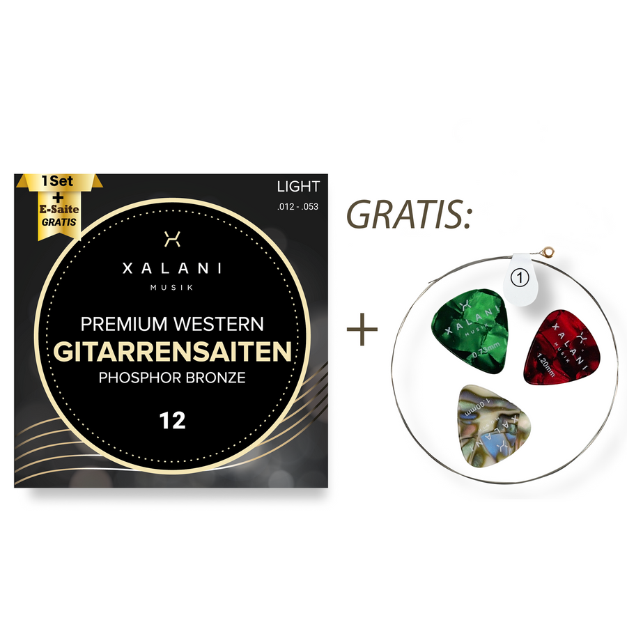 XALANI Gitarrensaiten Westerngitarre 012 I Bonus: 1 hohe E-Saite und 3 Plektren