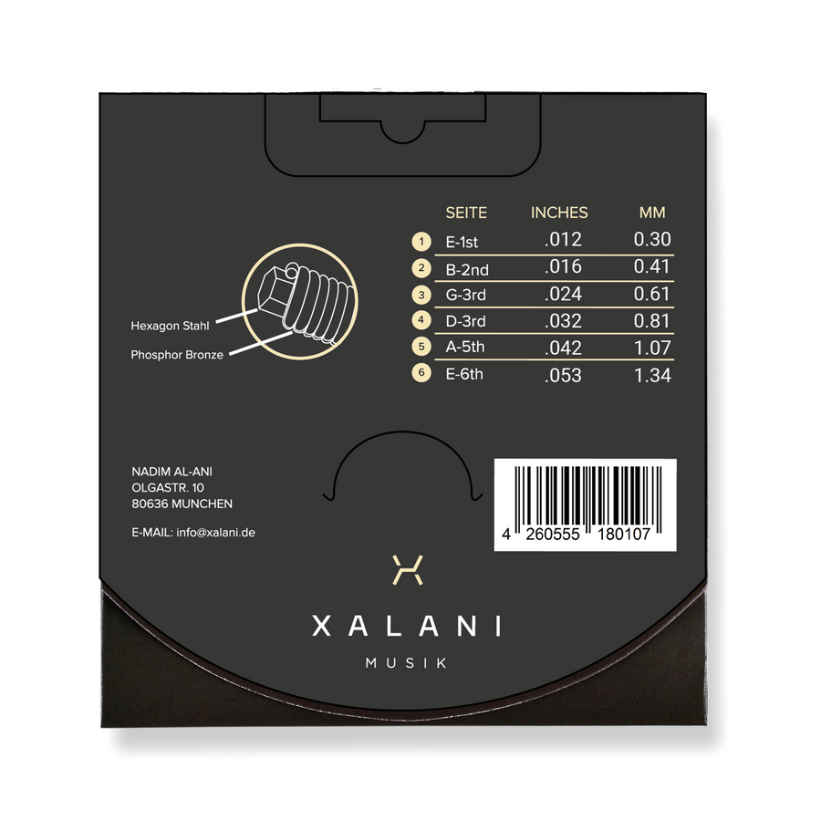 Die XALANI Gitarrensaiten sind ideal fĂŒr Westerngitarren geeignet. Sie bieten einen optimalen Klang und eine hervorragende Bespielbarkeit fĂŒr akustische Gitarren. FĂŒr andere Gitarrentypen wie Konzertgitarren oder E-Gitarren empfehlen wir spezielle Saiten, die fĂŒr diese Instrumente entwickelt wurden.